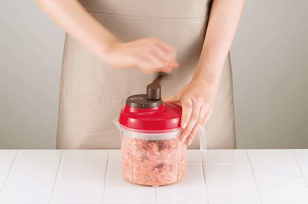 1台4役 ママ・ラクル■商品詳細1台4役!手間のかかる料理もくるくる回すだけ!◆ハンドルを回すだけで、きざむ、まぜる・こねる、落とし込む、レンジで蒸すの4つができる!◆変速ギア内蔵なので、細かいみじん切りモード、粗く刻んだりこねたりするモードの2つが選べる!◆スパチュラ式ハネ構造で、中の食材をすくい上げながら、まぜたりこねたりできる!◆中フタが付いているので、食材が直接外フタにつかず、洗うのも簡単です。