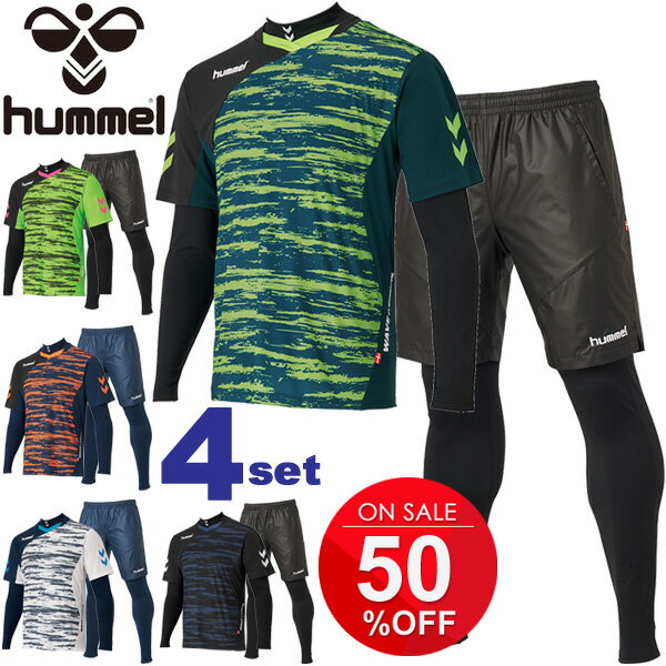 半袖シャツ パンツ インナーシャツ ロングタイツ 4点セット メンズ/ヒュンメル hummel あったかインナー+プラクティスウェア 上下セット/プラクティスシャツ ショーツ 裏起毛インナー/サッカー フットサル スポーツウェア 練習着/HAP7110-HAP2110